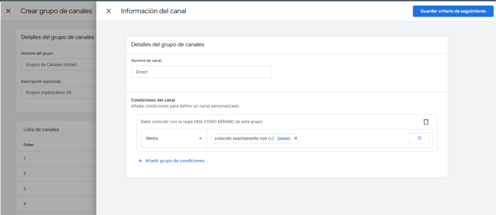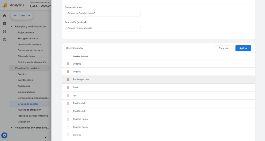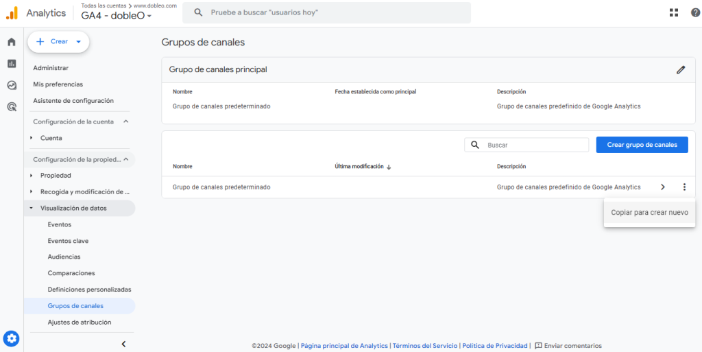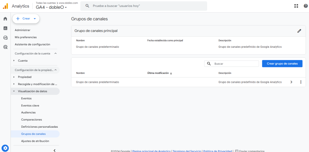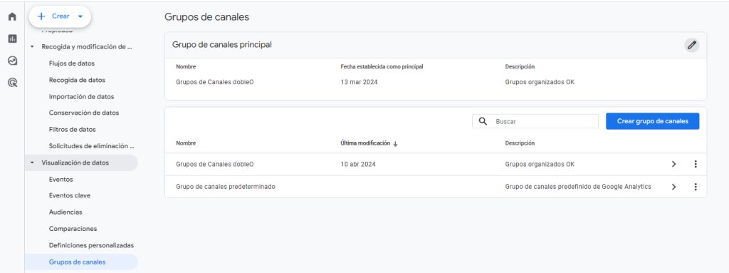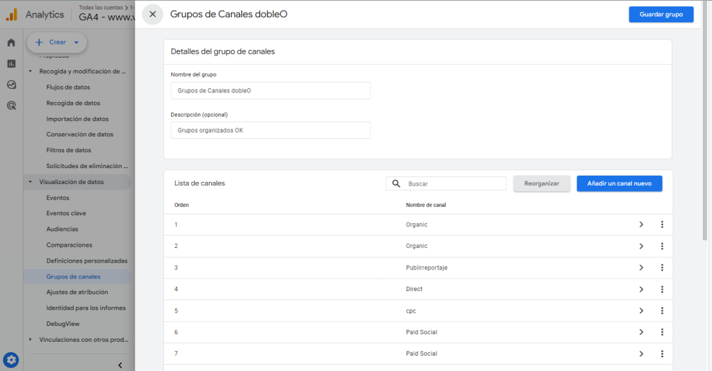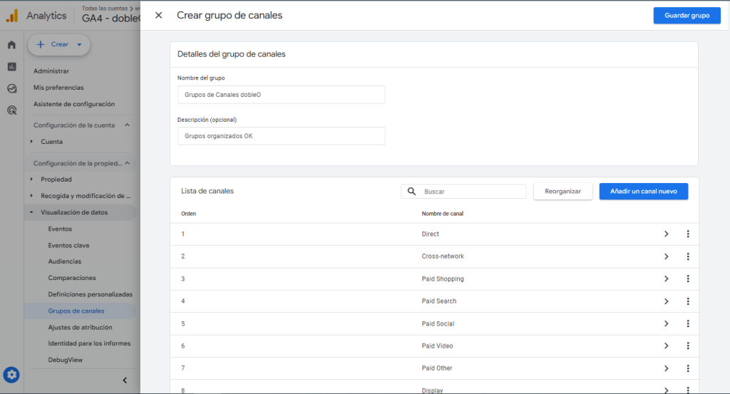 Con estos pasos, podrás crear un grupo de canales nuevo en GA4 que se adapte a tus necesidades.