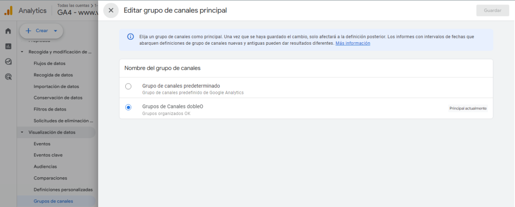 - Cómo editar el grupo de canales predeterminado en GA4