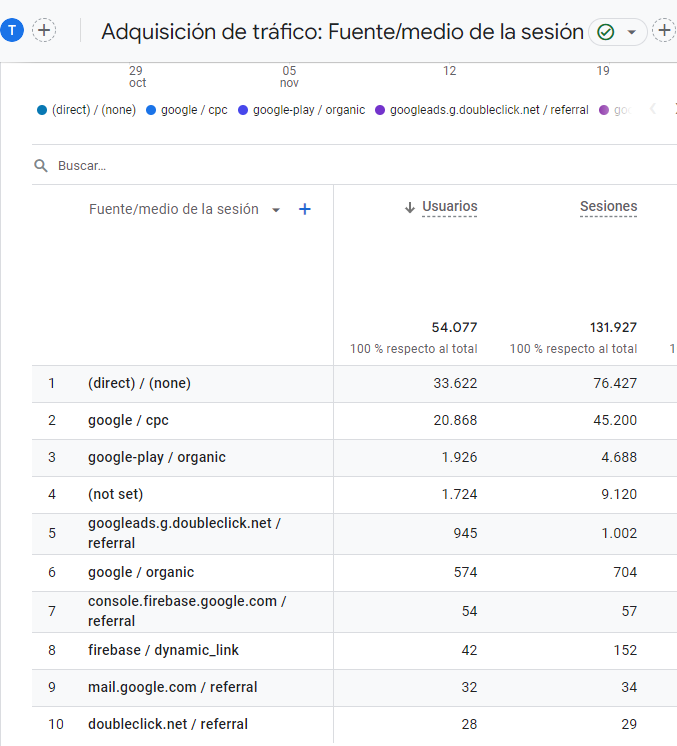Aquí la dimensión principal es ‘Fuente/medio de sesión’.