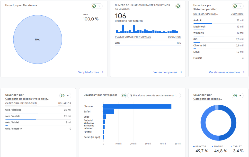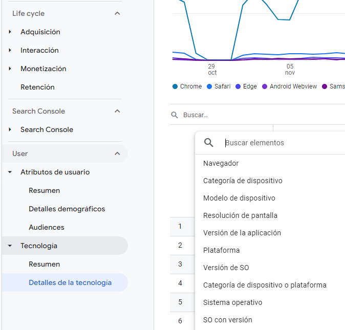 - Navegador: el nombre del navegador web utilizado por sus usuarios para interactuar con tu sitio web.