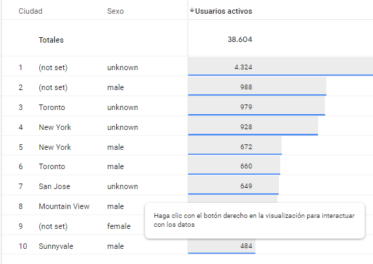 - Ciudad: el nombre de la ciudad desde la que se originó la actividad del usuario.