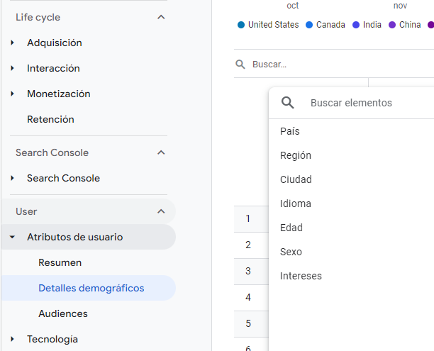 Puedes ver las dimensiones demográficas de los usuarios en los siguientes informes GA4: