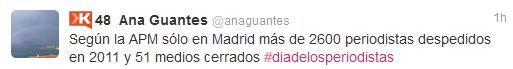 Sin embargo, al igual que la alegría embargaba el #CMDay entre los twiteros del sector debido al buen momento que vive el marketing online, los tweets sobre el #diadelosperiodistas reflejan la desazón y el malestar ante la situación que viven los Medios de Comunicación y sus trabajadores.