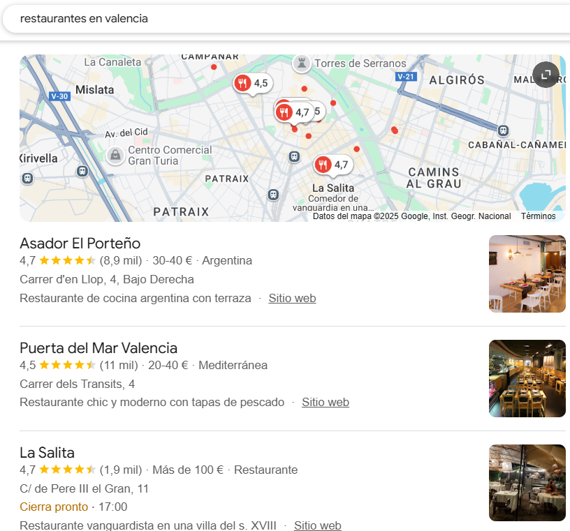 Ejemplo: Si gestionas un restaurante en Valencia y publicas ofertas de menú semanal, Google considerará tu ficha más relevante cuando los usuarios busquen «restaurante en Valencia».