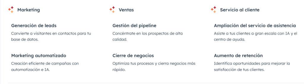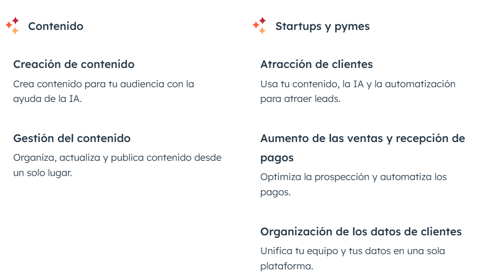 Hubspot es una plataforma multifuncional para clientes que quieran profesionalizar el marketing de sus proyectos. Desde hace relativamente usan IA que permite gestionar todos los módulos e integraciones que ofrece la plataforma para unir y sincronizar el marketing, con las ventas y el servicio al cliente.