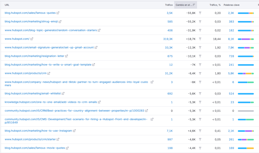 Análisis de la caída del tráfico orgánico de Hubspot